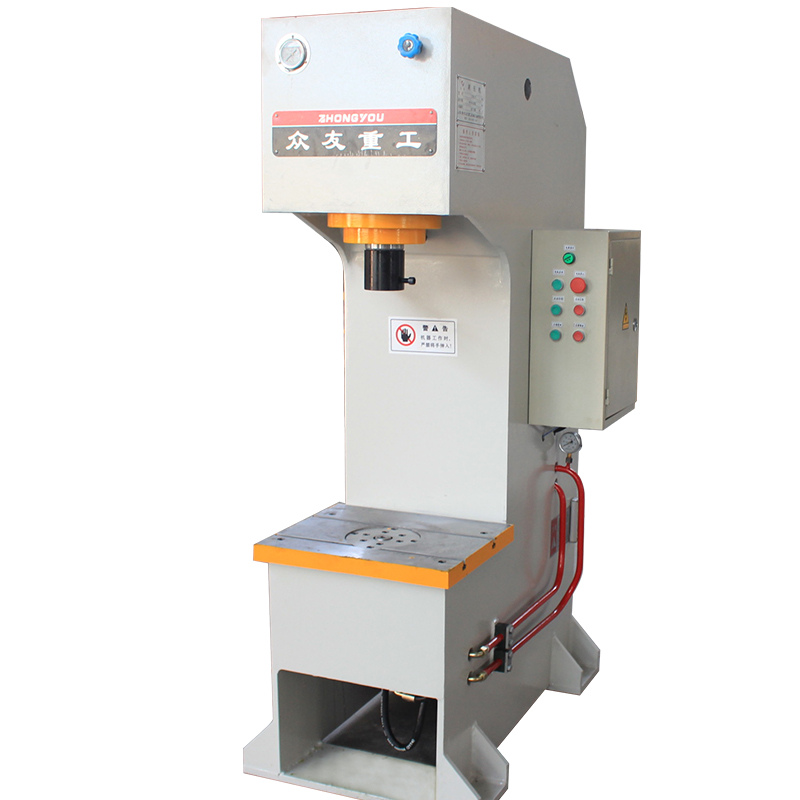 单臂油压机又叫单柱油压机、C型油压机,机身为“C”型单臂式结构,采用钢板CO2保护焊接,焊接后通过回火时效处理,确保机身永不变形。液压系统位于机身内,外形美观,操作方便,利用三面空间可扩宽工作范围,压控制采用二通插装阀集成系统,工作可靠,动作直观,维修方便。采用按钮集中控制,具有调整,手动,半自动(半自动可分为单定程单次和定压单次两种工艺)三种操作方式